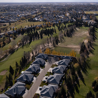 A drone shot of the Spruce Grove golf course, with large homes near by.